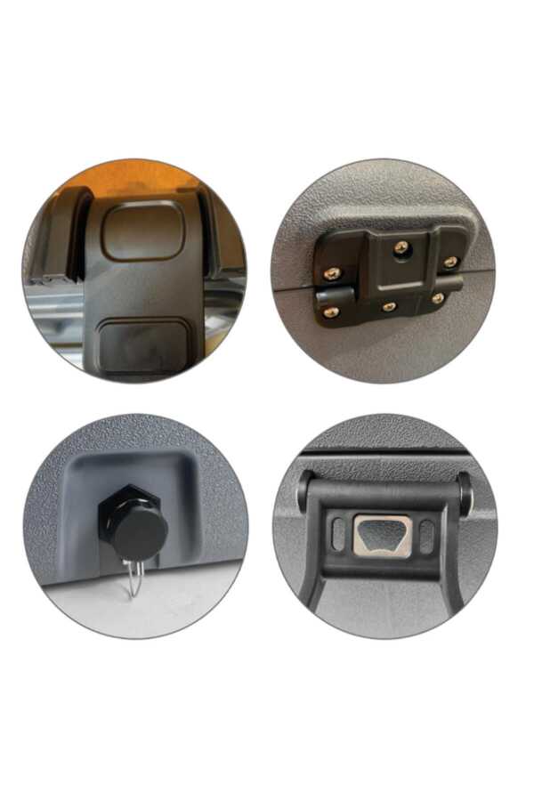 İçeriye bakmak istersek bizleri öncelikle, ön yüzeyde bulunan 2 adet kilitli açma-kapama mandalı karşılıyor.