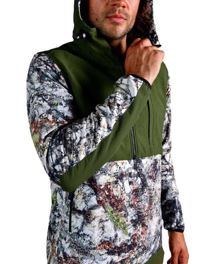 Anorak’un öndeki YKK yarım fermuar tasarımı, sıcaklık kontrolü ve havalandırma açısından pratik bir çözüm sunar. Ayrıca, yandan açılabilen YKK fermuarı, softshelli kolayca giyip çıkarabilmenizi sağlar. Yan cepler ve göğüs cebi, eşyalarınızı güvenle taşımanıza olanak tanırken, ayarlanabilir kapüşon yapısı rüzgar ve yağmur gibi hava koşullarına karşı ekstra koruma sağlar. Göğüs ve sırt bölgesindeki şık işlemeli logolar ise tarzınıza benzersiz bir dokunuş katar.